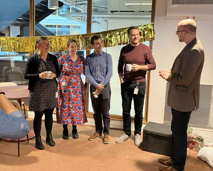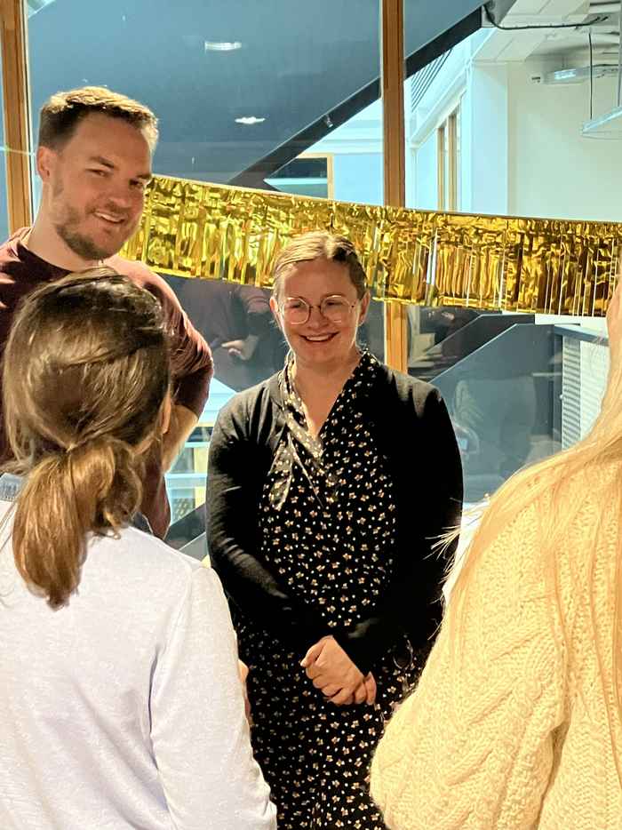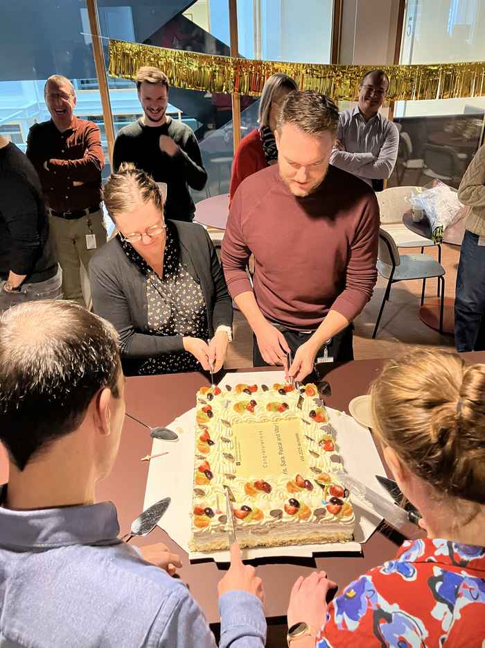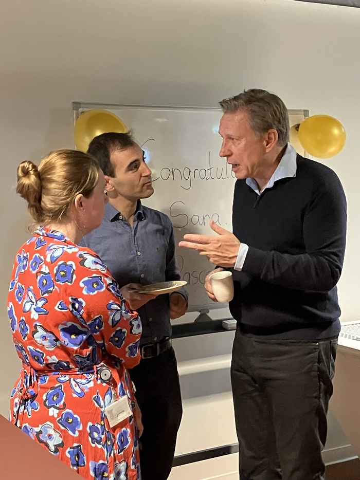 After a joint cake cutting, everybody enjoyed the celebratory cake and a chat with the laureates.