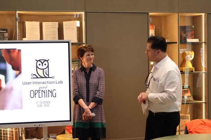 The afternoon featured remarks by Dr Jacobijn Sandberg, an emeritus faculty member of IvI, who had the original vision for the lab, Prof. Marcel Vreeselijk, Vic-Dean of the Faculty of Science, and Prof. Judith Good, Director of the User Interaction Lab. Their remarks highlighted the importance of the UIL for education and research, as well as the collaborative effort behind its creation.