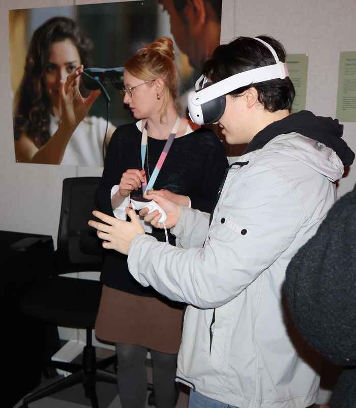 During the opening, visitors explored the interactive Overwhelm exhibit, saw demonstrations of new technologies, and engaged in informal discussions over drinks. These activities showcased the lab’s focus on hands-on, experiential learning and meaningful interaction with technology.
