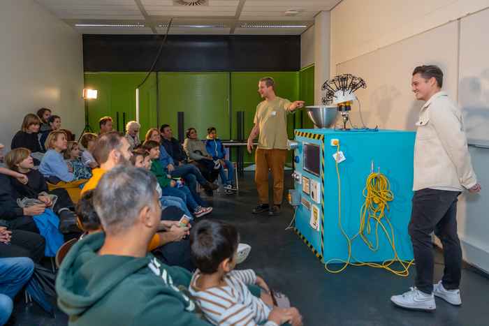 Throughout the day, visitors were challenged with fascinating questions that reveal what scientists are currently working on. For example: How can you clean a toilet using bacteria? How does a tornado form? How do you glue glasses onto a locust? How does an AI know what a crooked banana is? And finally, are you a pragmatic or a rational thinker?