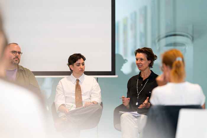 Bregtje van der Haak emphasized the need for technological literacy to have meaningful ethical debates, pointing out Eye’s interest in AI where humans remain at the creative center. She also noted that Eye uses AI for film archive searchability, but resists handing over archives as training data until regulations clarify the distinction between original and AI-generated content.